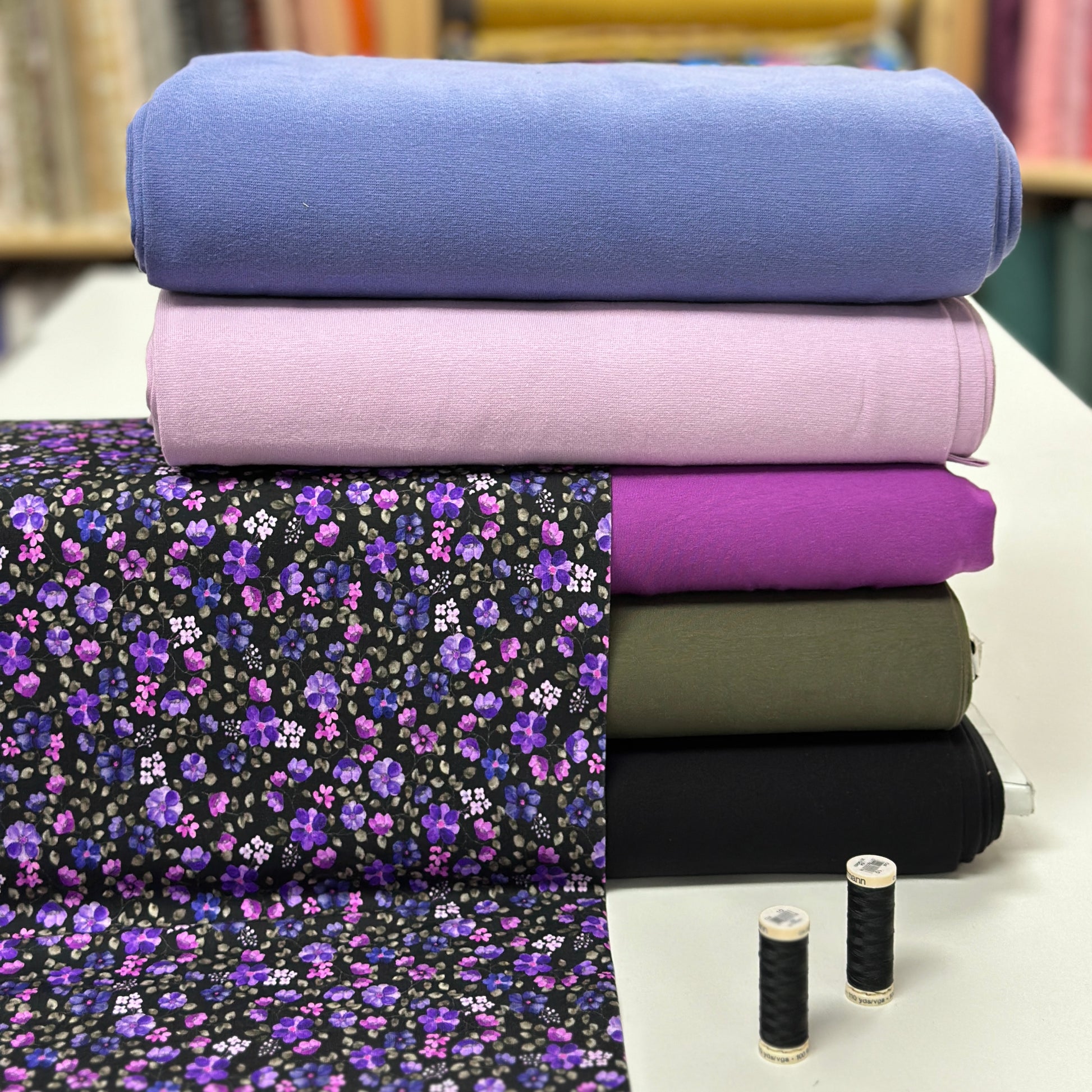 Jersey importé d'Europe, de qualité supérieure. Extensible (4 way stretch), idéal pour confectionner des pantalons évolutifs, des hoodies, des chandails, des robes, etc. Pour vous inspirer, rejoignez-nous sur Facebook!