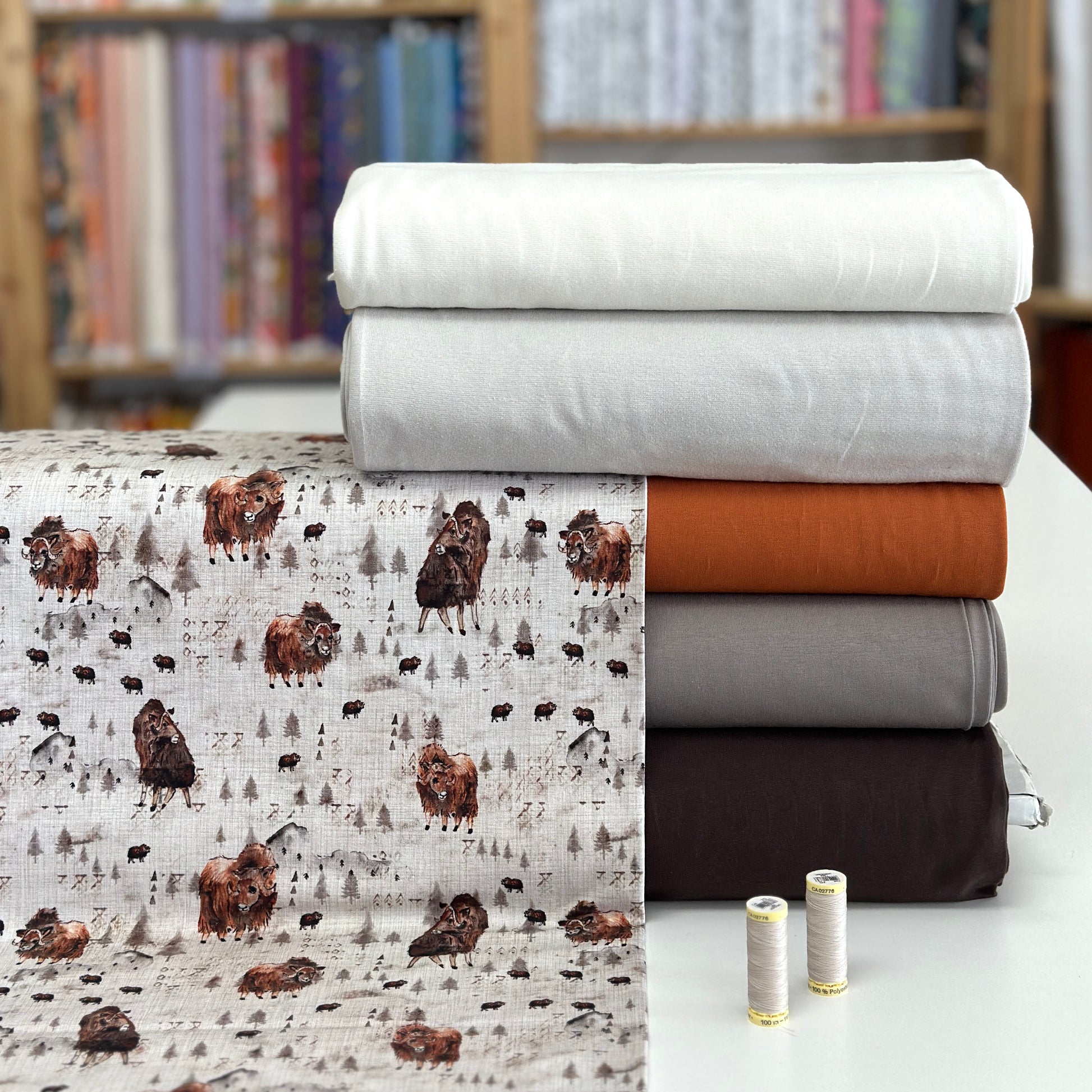 Jersey imprimé de qualité supérieure. Extensible (4 way stretch), idéal pour confectionner des pantalons évolutifs, des hoodies, des chandails, des robes, etc. Pour vous inspirer, rejoignez-nous sur Facebook!