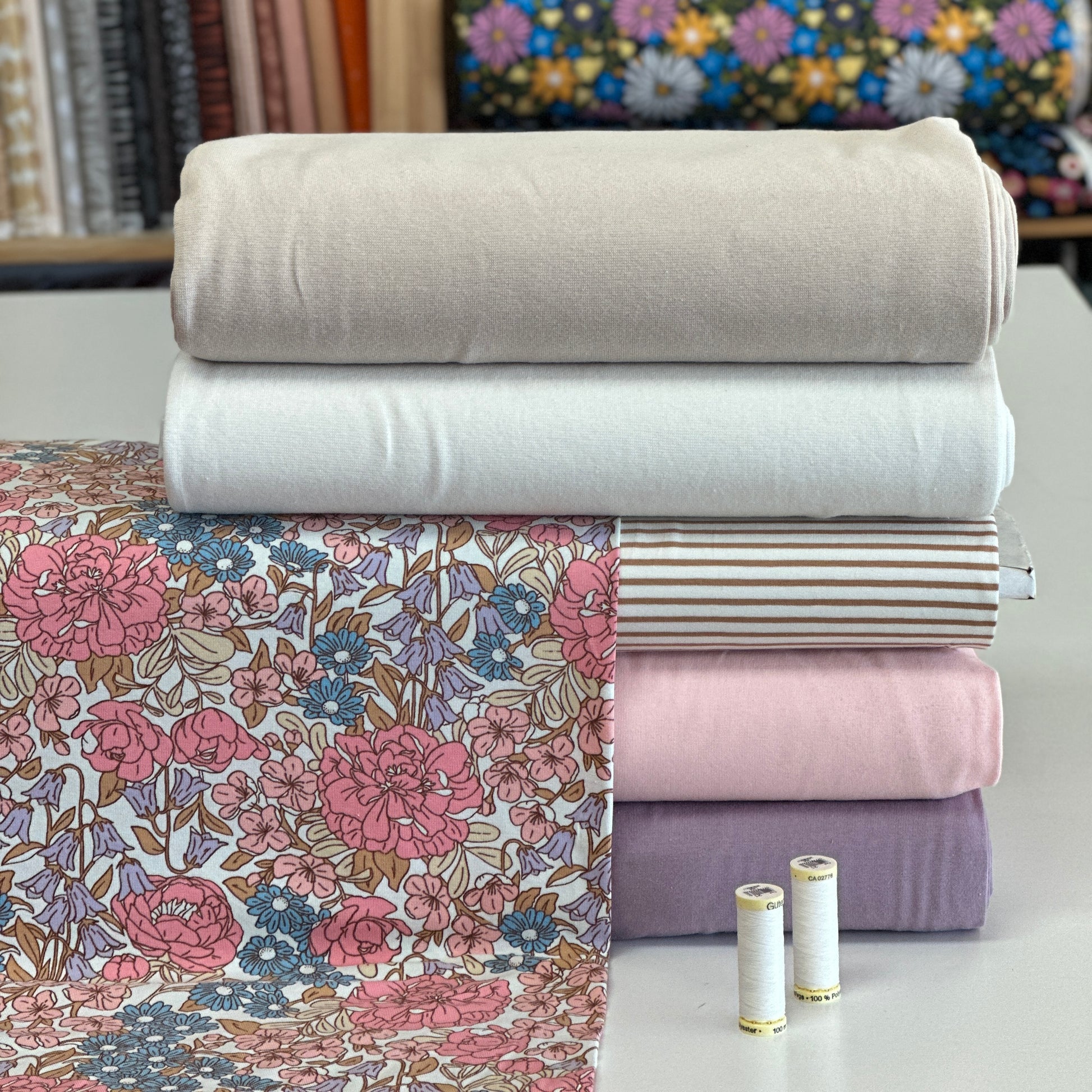 Jersey importé d'Europe, de qualité supérieure. Extensible (4 way stretch), idéal pour confectionner des pantalons évolutifs, des hoodies, des chandails, des robes, etc. Pour vous inspirer, rejoignez-nous sur Facebook!