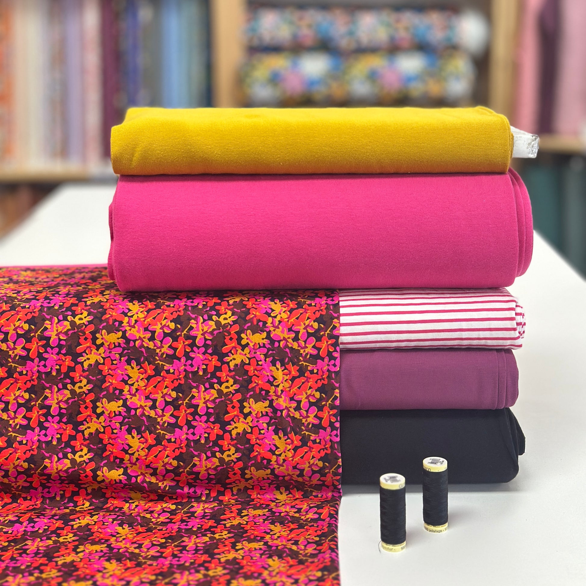 Jersey de qualité supérieure. Extensible (4 way stretch), idéal pour confectionner des pantalons évolutifs, des hoodies, des chandails, des robes, etc. Pour vous inspirer, rejoignez nous sur Facebook!