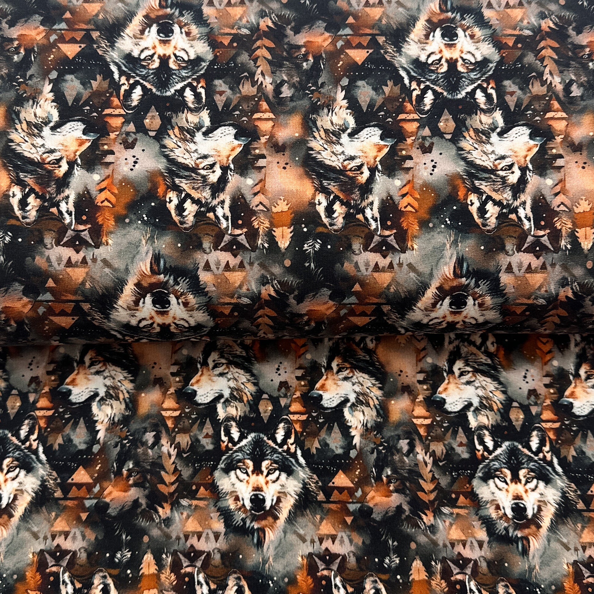 Fin de rouleau 36 cm - Loups orangé - French Terry brossé imprimé