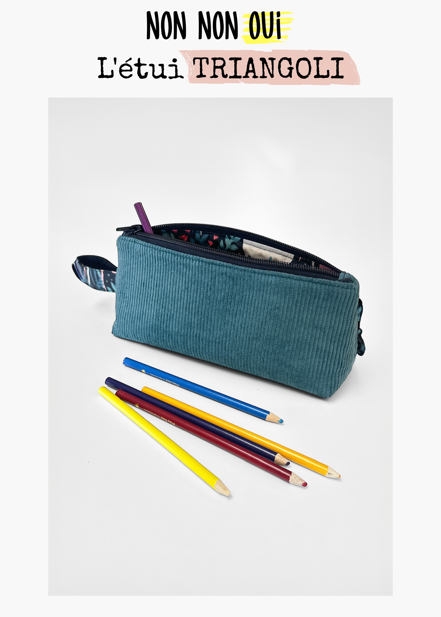 The TRIANGOLI case is an ideal companion for school, office, or workshop. With its dimensions of 22 cm long, 8 cm wide, and 10 cm high, it offers generous space for your pencils. Its flat, rectangular base ensures good stability and a modern style. The zipper, carefully finished with tabs at the ends, guarantees easy and durable use. Thanks to its side strap, you can carry it effortlessly. It’s a perfect choice for beginners with some experience or those looking for a simple and satisfying project.