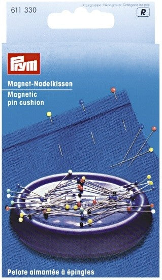 The Prym magnetic cushion is ideal for storing pins next to the sewing machine and sewing station. Here, the needles are not inserted but held by the force of a magnet on the surface of the oval plum blue plastic and are ready to be grabbed. Away from the sewing unit, the magnetic cushion is also perfect for storing thumbtacks or staples.