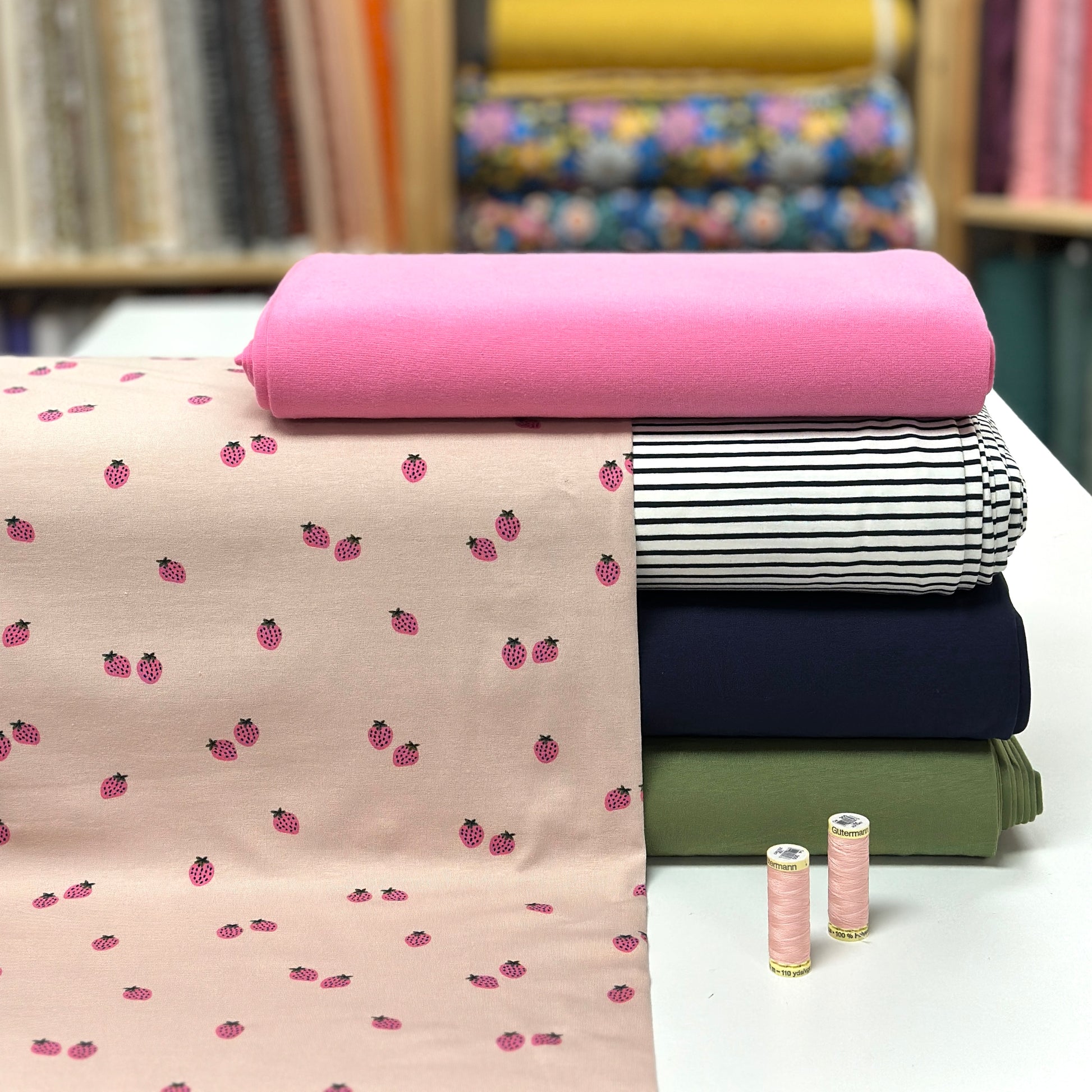 Jersey importé d'Europe, de qualité supérieure. Extensible (4 way stretch), idéal pour confectionner des pantalons évolutifs, des hoodies, des chandails, des robes, etc. Pour vous inspirer, rejoignez-nous sur Facebook!