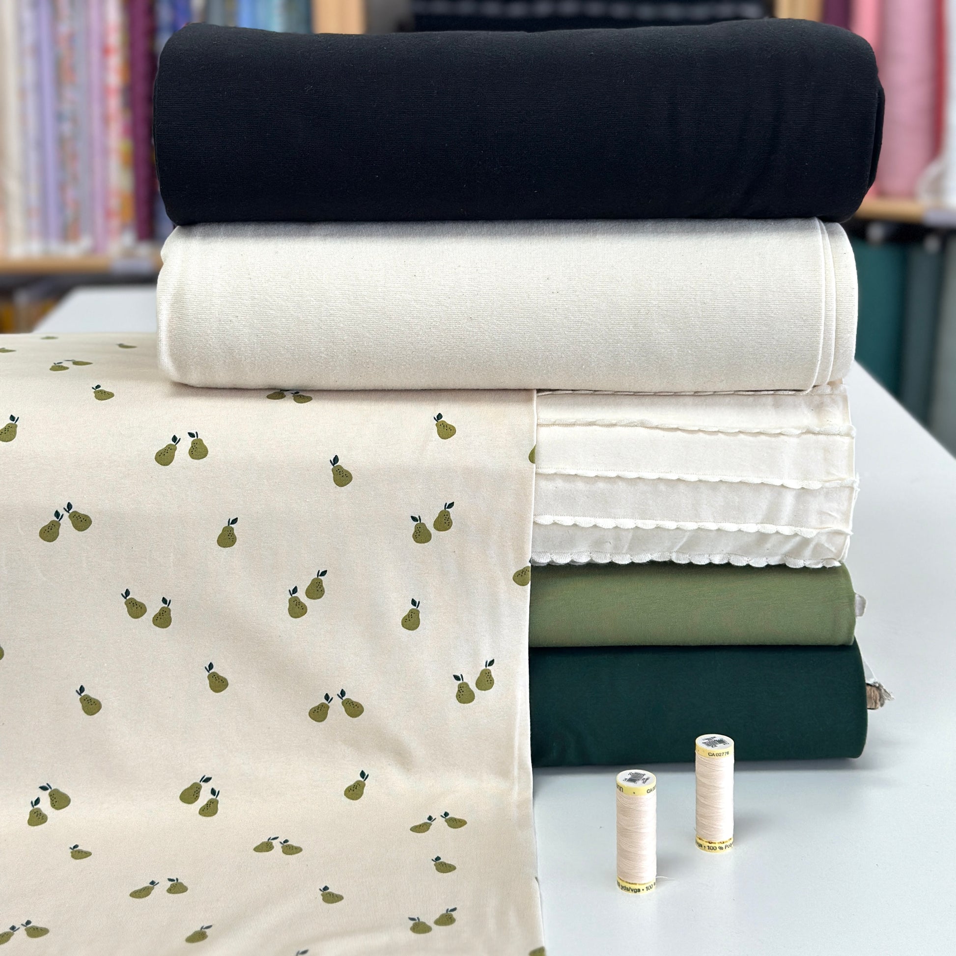 Jersey importé d'Europe, de qualité supérieure. Extensible (4 way stretch), idéal pour confectionner des pantalons évolutifs, des hoodies, des chandails, des robes, etc. Pour vous inspirer, rejoignez-nous sur Facebook!