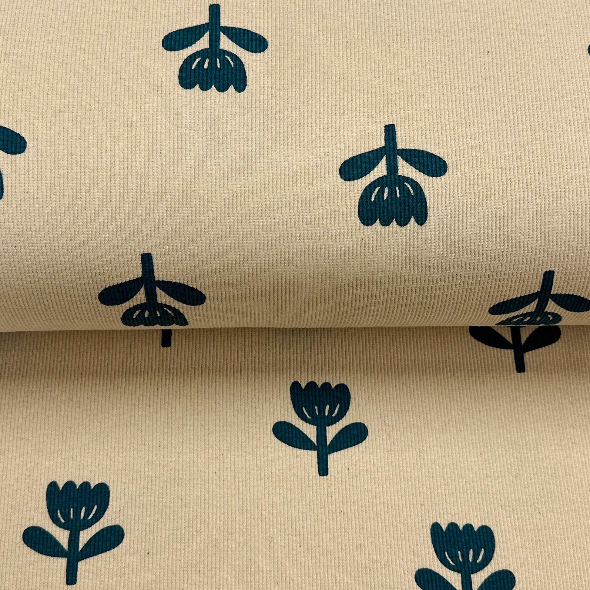Petites fleurs pétrole - Jersey côtelé imprimé biologique