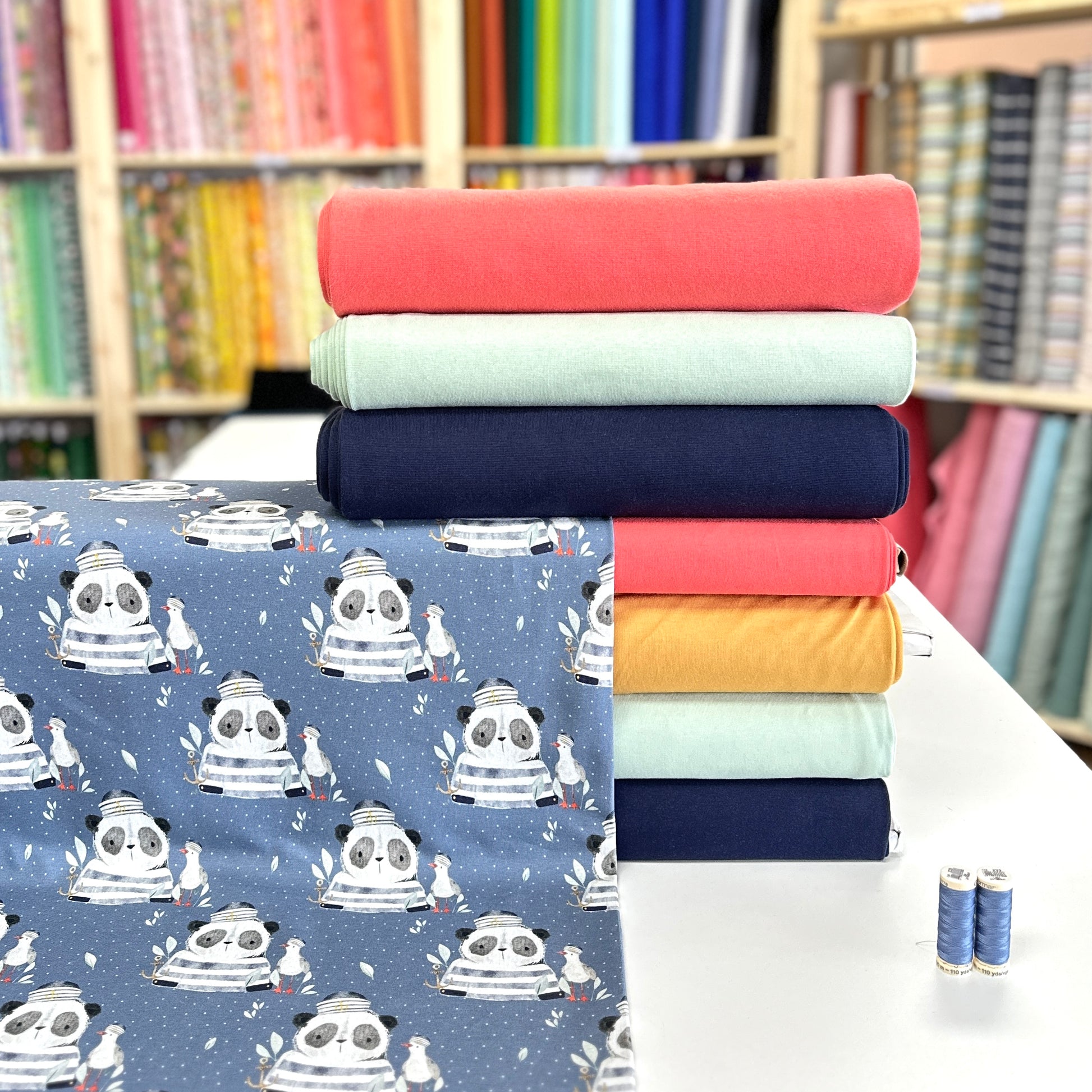 Jersey : Navy blue, Mint, Ochre, Dark coral