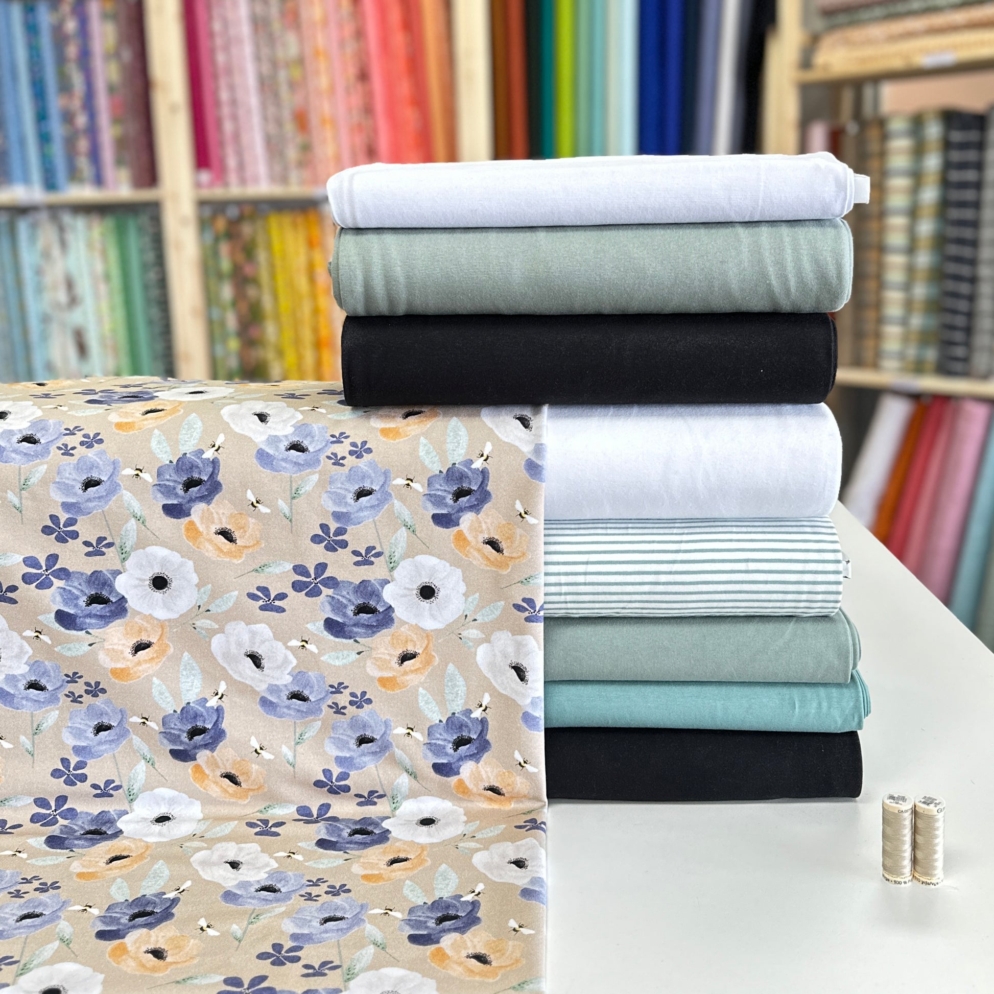 Premium printed jersey, Oeko-Tex certified. Stretchy (4 way stretch), perfect for making adjustable pants, hoodies, sweaters, dresses, etc. To get inspired, join us on Facebook!