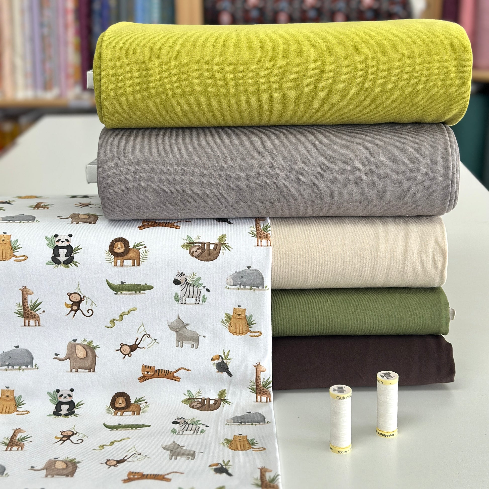Jersey importé d'Europe, de qualité supérieure. Extensible (4 way stretch), idéal pour confectionner des pantalons évolutifs, des hoodies, des chandails, des robes, etc. Pour vous inspirer, rejoignez-nous sur Facebook!