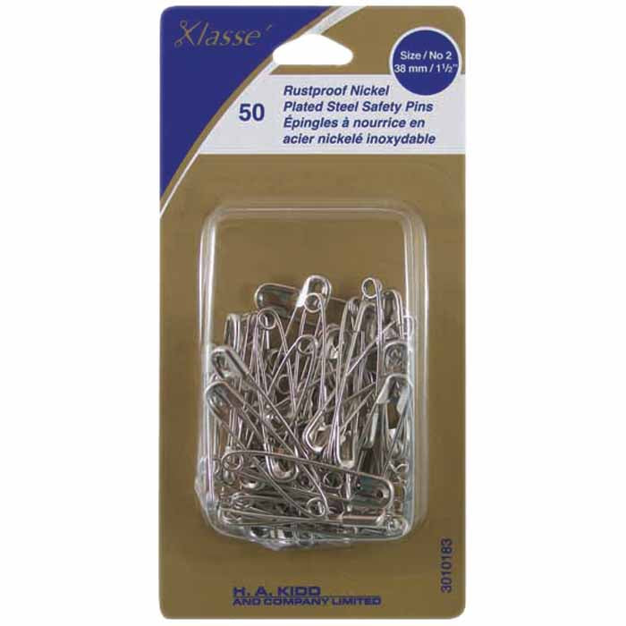 KLASSE´ Nickel Plated Steel Safety Pins 50pcs - 38mm (11⁄2″) Size 2