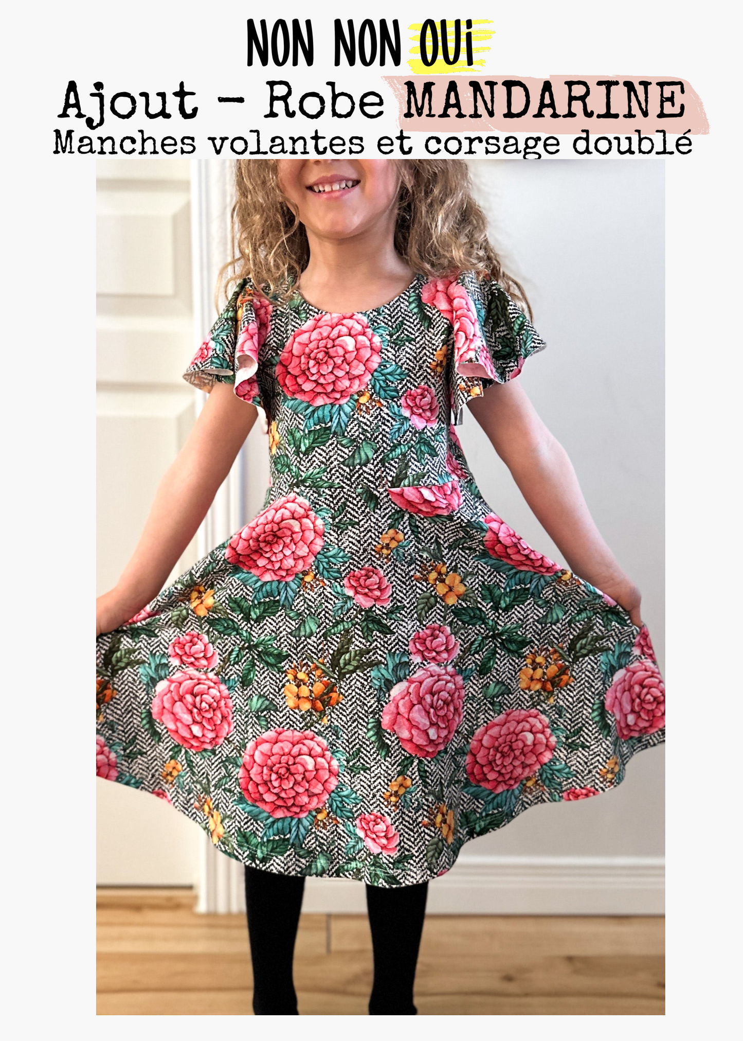 Cet ajout de manches volantes et de corsage doublé doit être utilisé avec le patron de la robe MANDARINE, disponible sur le site Internet de NON NON OUI, juste ICI.