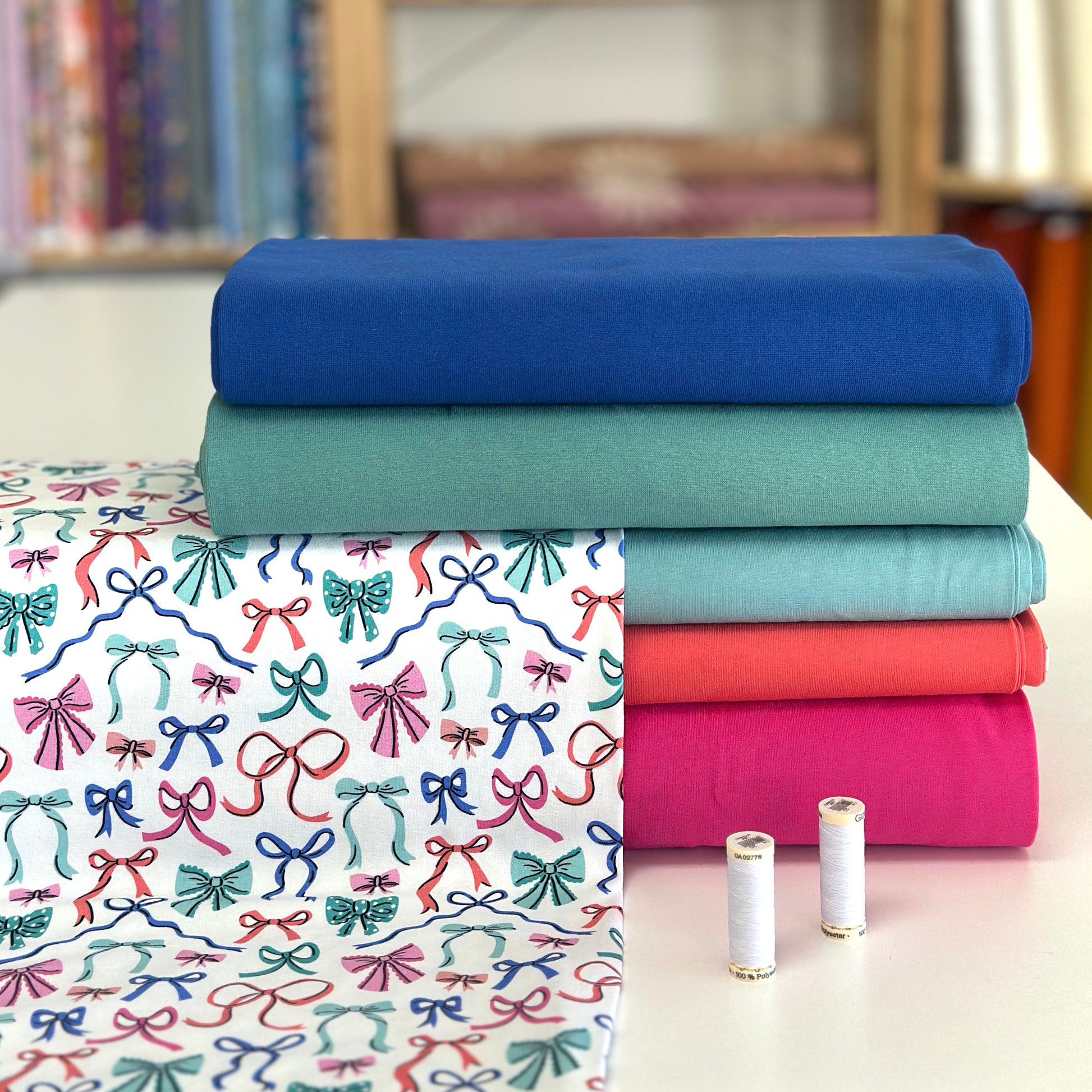 Jersey imprimé de qualité supérieure. Extensible (4 way stretch), idéal pour confectionner des pantalons évolutifs, des hoodies, des chandails, des robes, etc. Pour vous inspirer, rejoignez-nous sur Facebook!