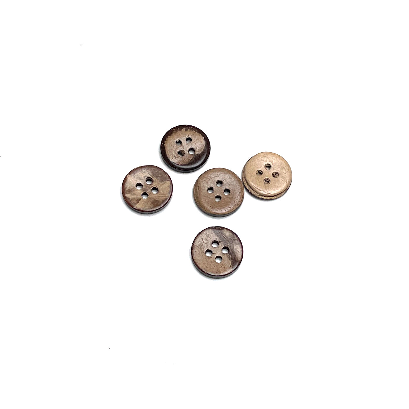 Bouton 4 trous de couleur brun coco. Fait en noix de coco.