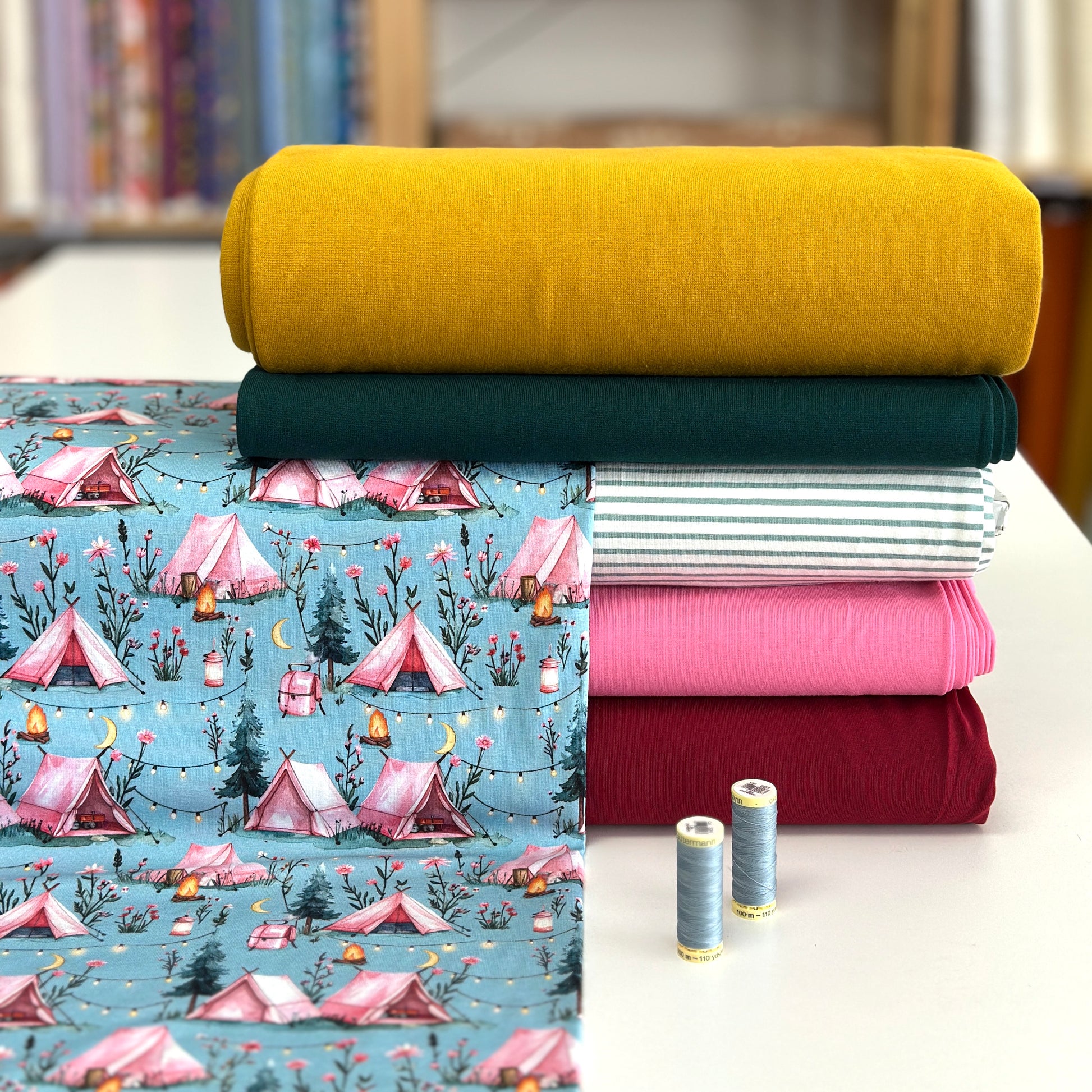 Jersey imprimé de qualité supérieure. Extensible (4 way stretch), idéal pour confectionner des pantalons évolutifs, des hoodies, des chandails, des robes, etc. Pour vous inspirer, rejoignez-nous sur Facebook!