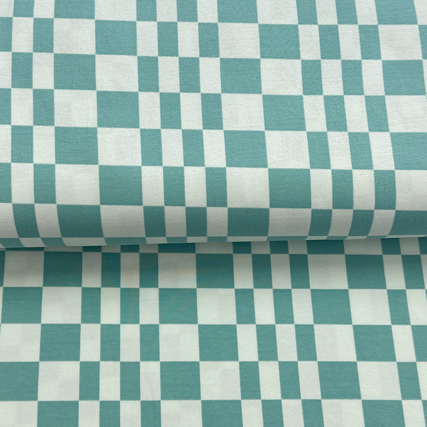 Carreaux cool écru/bleu vert - Jersey imprimé