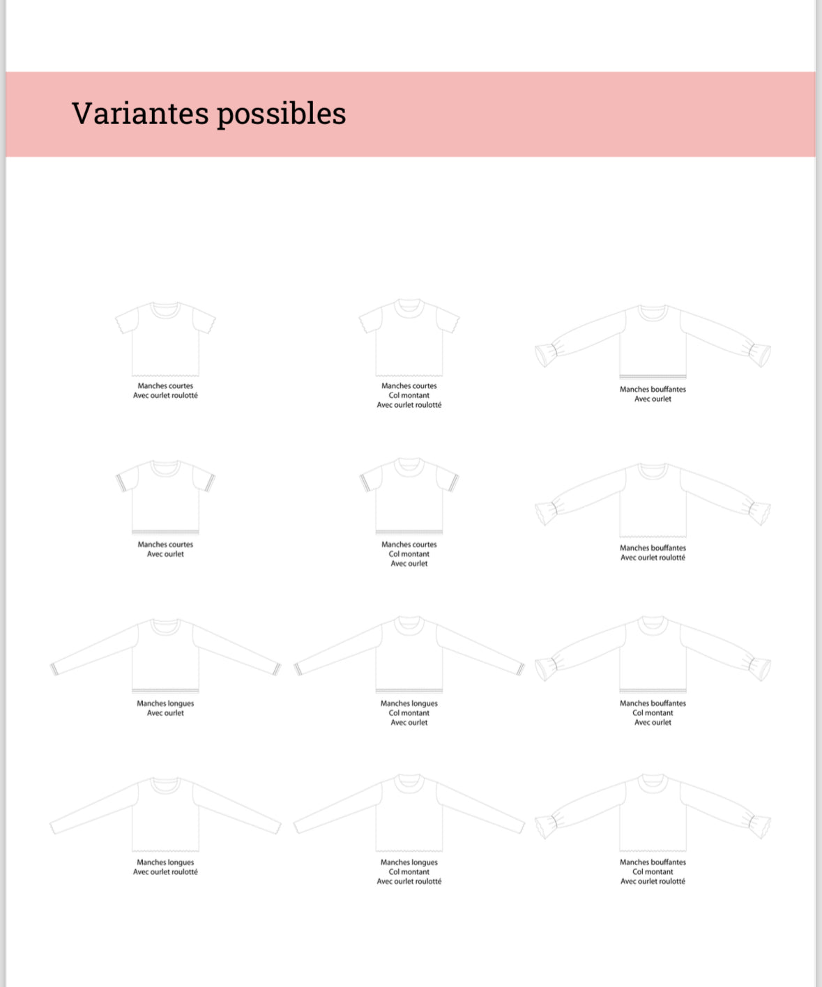 Le patron CERISE est un chandail ajusté à manches courtes ou longues. Il est parfait pour les sorties décontractées, les journées à l’école ou pour les activités en plein air. Les manches courtes peuvent être portées en toutes saisons, les manches longues sont idéales pour les journées plus fraîches et les manches bouffantes apportent une touche de fantaisie. Une option avec col montant est aussi disponible, pour le style et le confort.