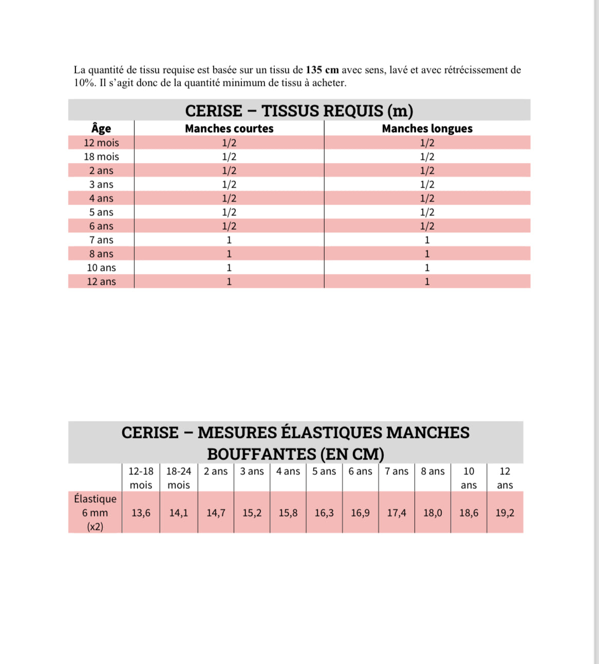 Ce patron est conçu pour des tissus extensibles à 100%, comme le jersey côtelé. Il est disponible pour les enfants de 12 mois à 12 ans.