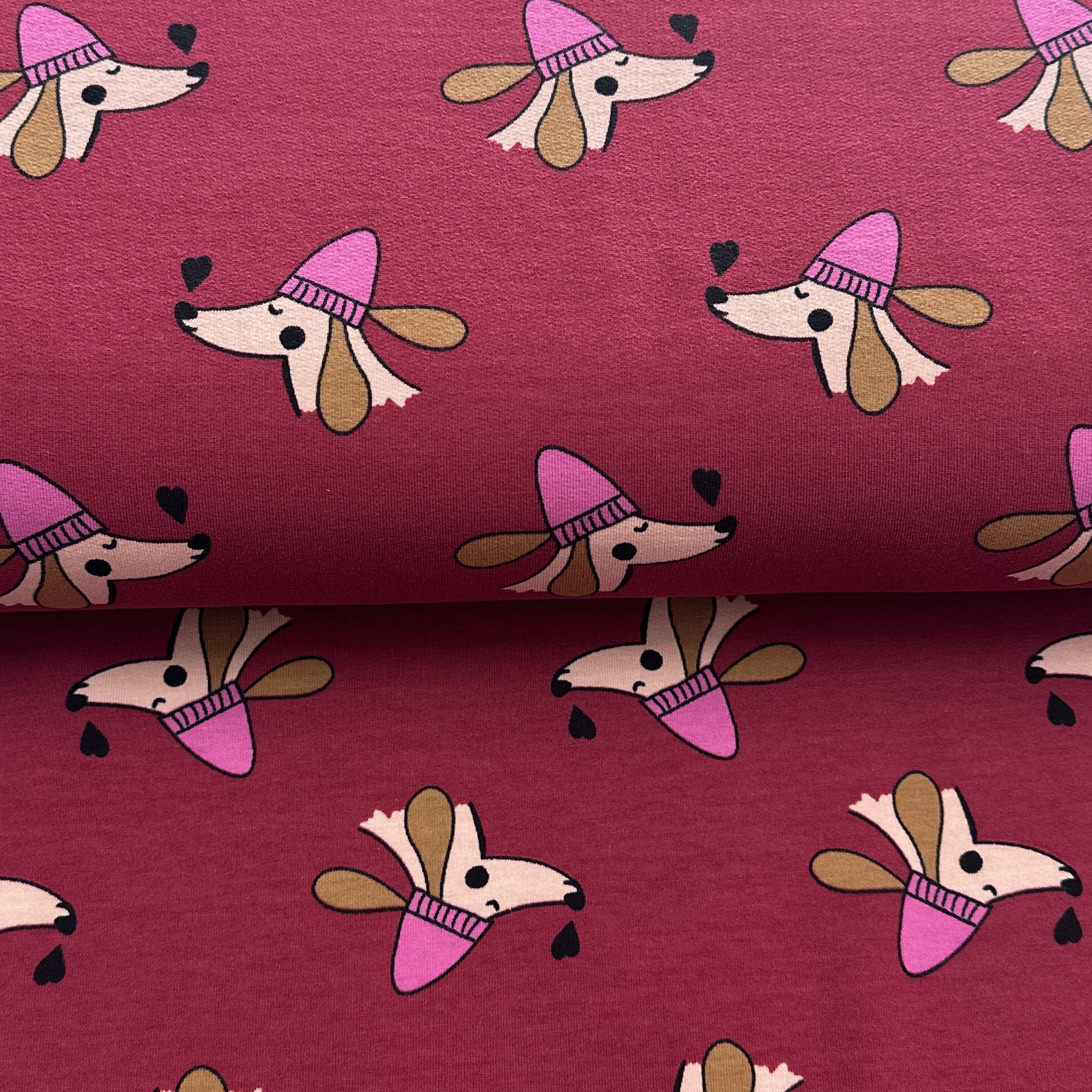 Chiens et coeurs rouge - French Terry imprimé
