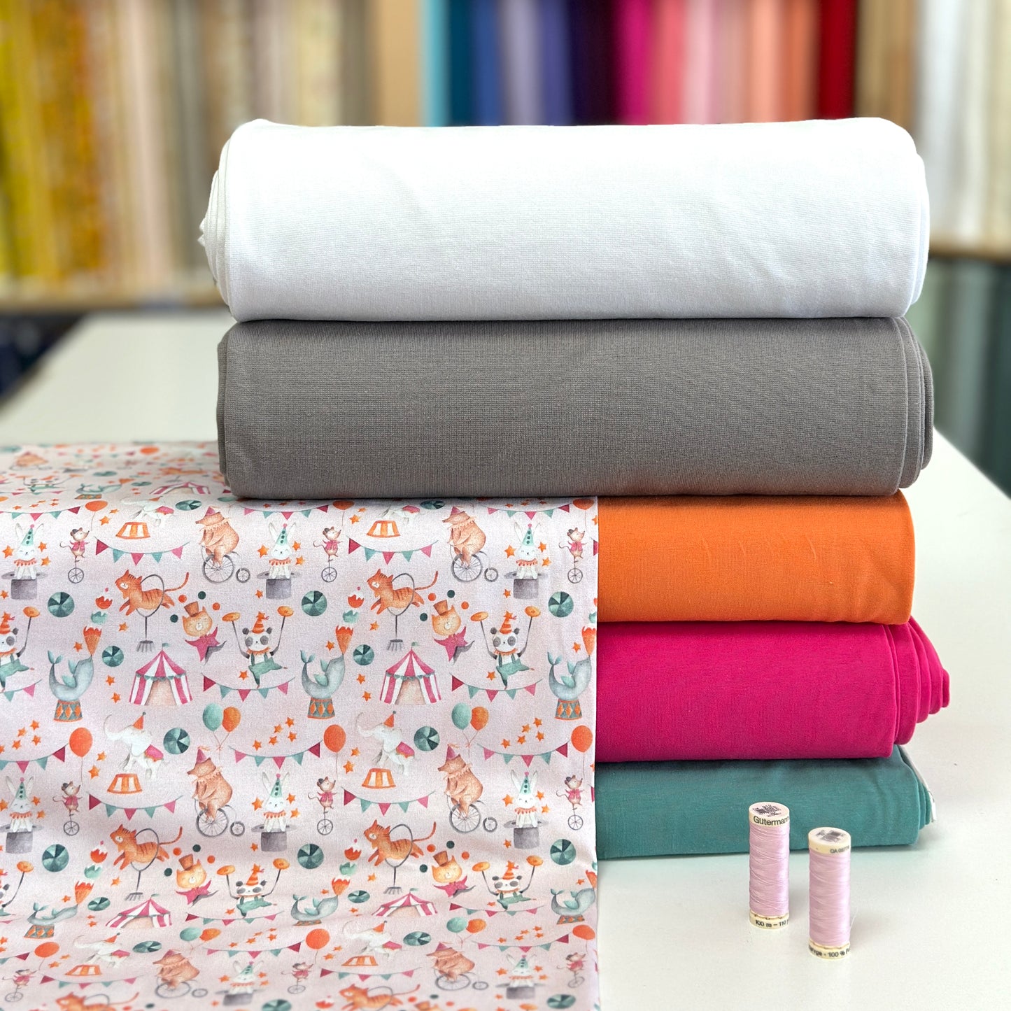 Jersey de qualité supérieure. Extensible (4 way stretch), idéal pour confectionner des pantalons évolutifs, des hoodies, des chandails, des robes, etc. Pour vous inspirer, rejoignez-nous sur Facebook!