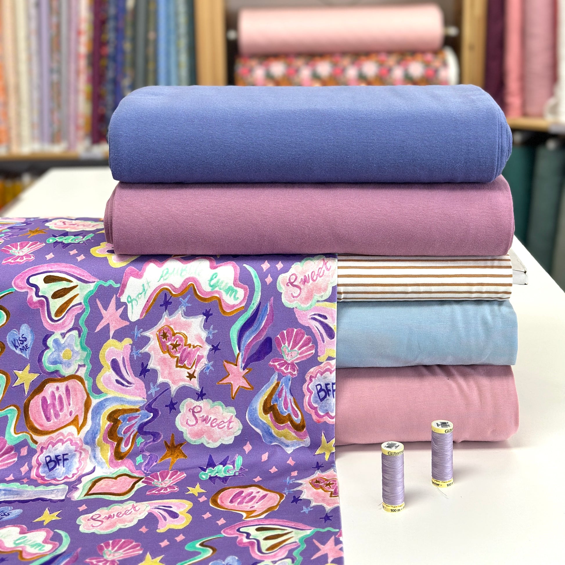 Jersey importé d'Europe, de qualité supérieure. Impression digitale. Extensible (4 way stretch), idéal pour confectionner des pantalons évolutifs, des hoodies, des chandails, des robes, etc. Pour vous inspirer, rejoignez-nous sur Facebook!