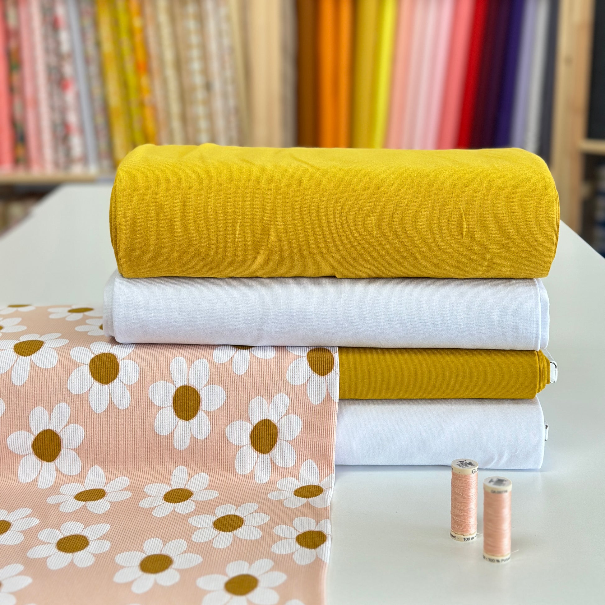 Jersey rib importé d'Europe, de qualité supérieure. Les tissus en maille côtelée ont un effet côtelé ou cordé, donc avec rayures embossées en ton sur ton. Extensible (4 way stretch), idéal pour confectionner des pantalons évolutifs, des hoodies, des chandails, des robes, etc. Pour vous inspirer, rejoignez nous sur Facebook!