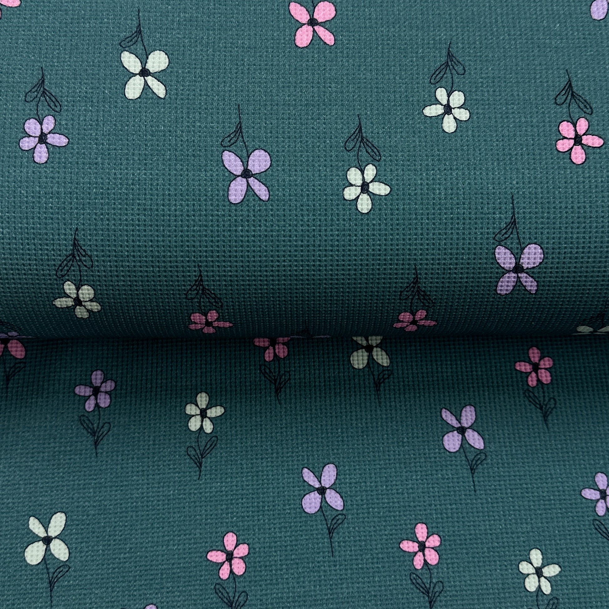 Expressives pétrole - Jersey gaufré imprimé