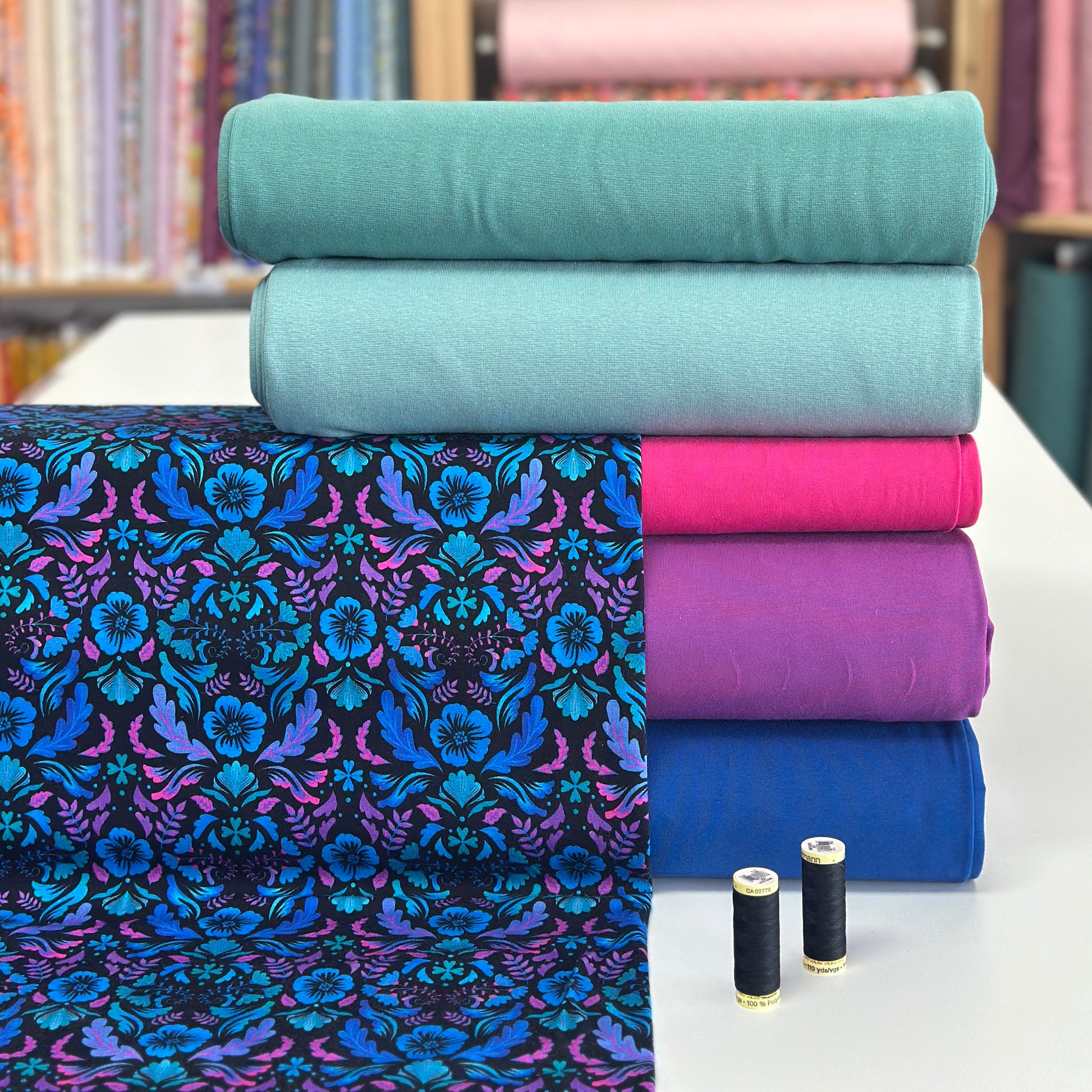 Jersey importé d'Europe, de qualité supérieure. Impression digitale. Extensible (4 way stretch), idéal pour confectionner des pantalons évolutifs, des hoodies, des chandails, des robes, etc. Pour vous inspirer, rejoignez-nous sur Facebook!