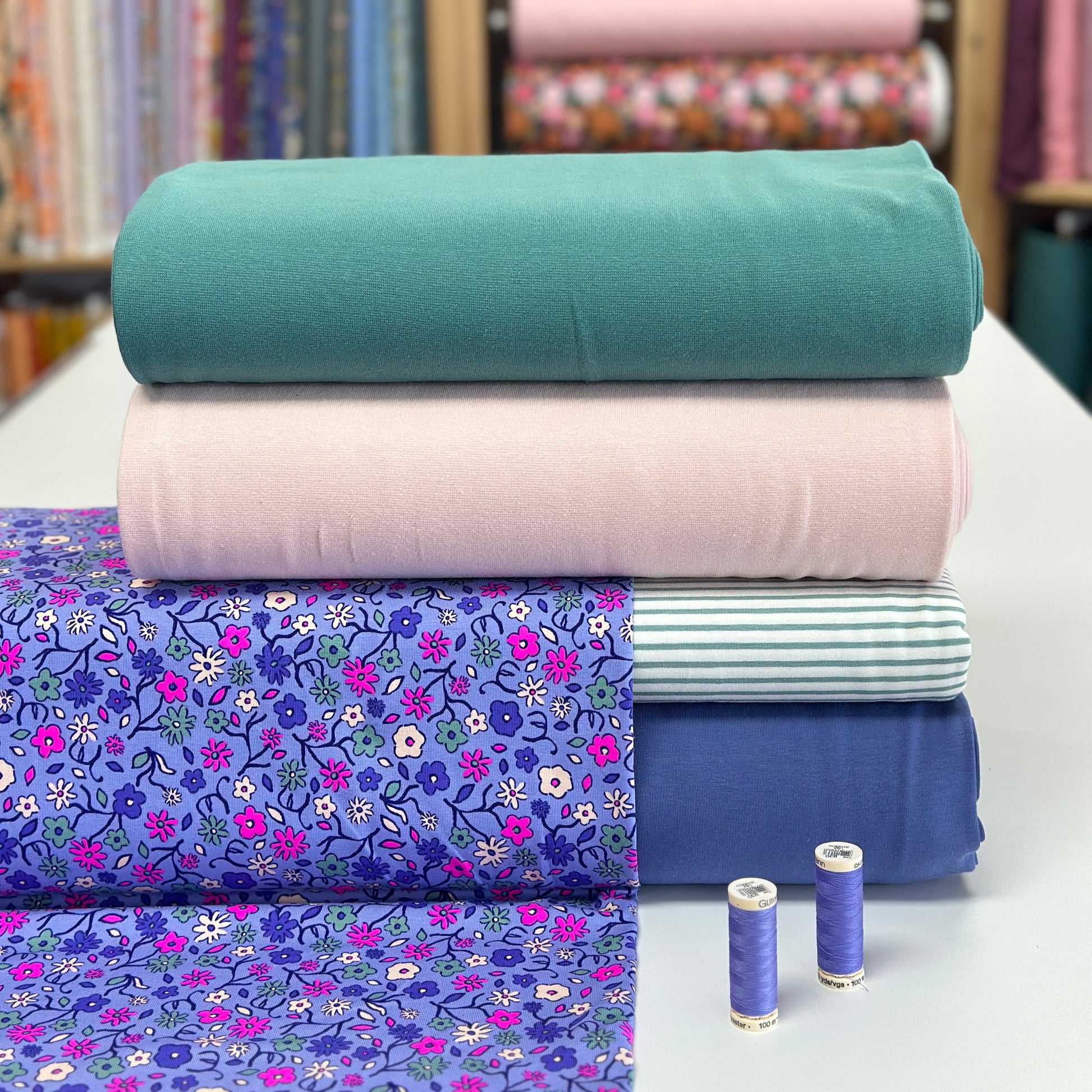Jersey importé d'Europe, de qualité supérieure. Extensible (4 way stretch), idéal pour confectionner des pantalons évolutifs, des hoodies, des chandails, des robes, etc. Pour vous inspirer, rejoignez-nous sur Facebook!