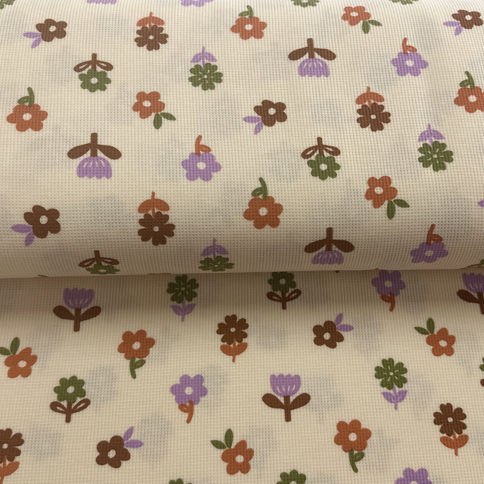 Floral écru - Jersey gaufré imprimé