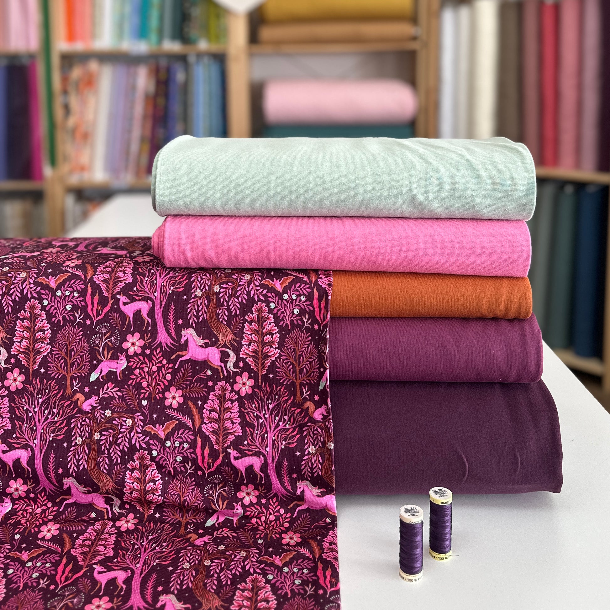 Forêt mystique bourgogne - French Terry imprimé digital