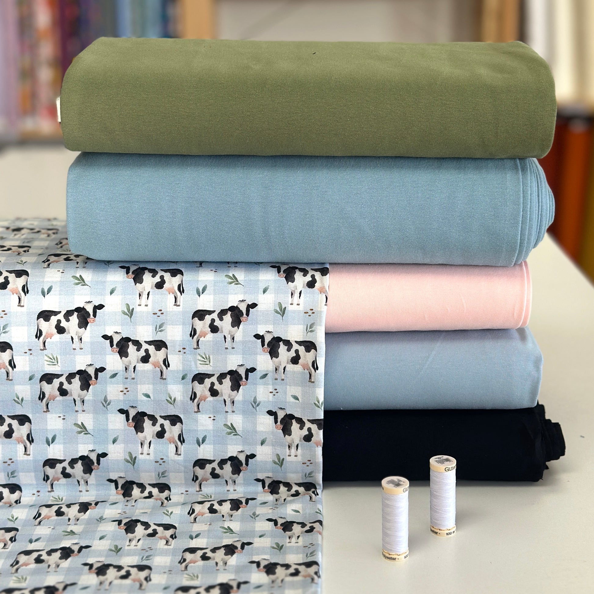 Jersey : Rose léger, Bleu poudre, Noir