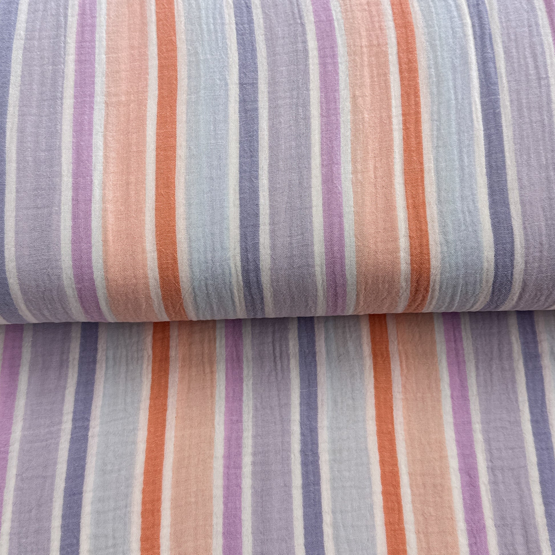 Ligné lilas/orange - Mousseline de coton teint sur fil