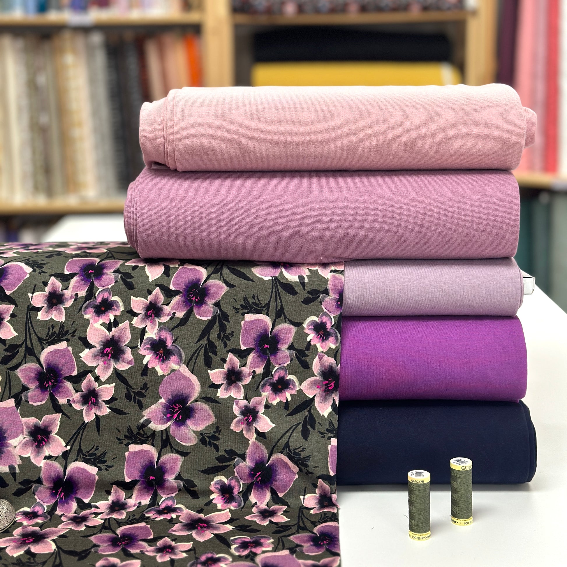 French Terry : Dahlia, Améthyste, Bleu matelot